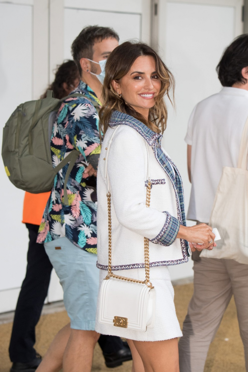 Если во что-либо и стоит вкладывать деньги, так это во вневременную классику, например, в юбочный костюм Chanel. Пенелопа Крус следует именно этому правилу в выборе одежды. Так, известная актриса и посол французского модного дома, была запечатлена в первый день 78-го Венецианского кинофестиваля в белом твидовом костюме Chanel. Пенелопа надела белую мини-юбку и жакет с синей контрастной клетчатой подкладкой в сочетании с базовой футболкой, элегантными атласными босоножками и сумкой Boy, знаковым аксессуаром модного Дома.