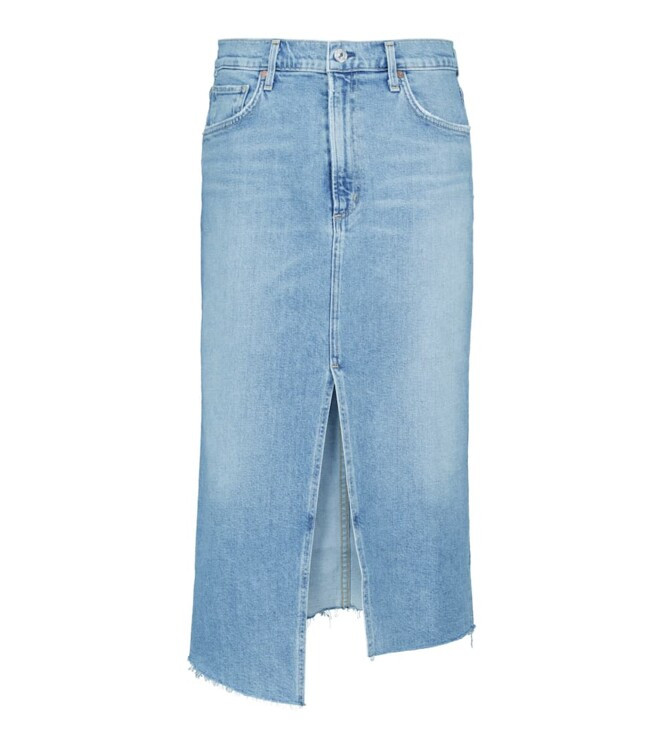 10 джинсовых юбок длины миди, как у Беллы Хадид - «Уличный стиль»