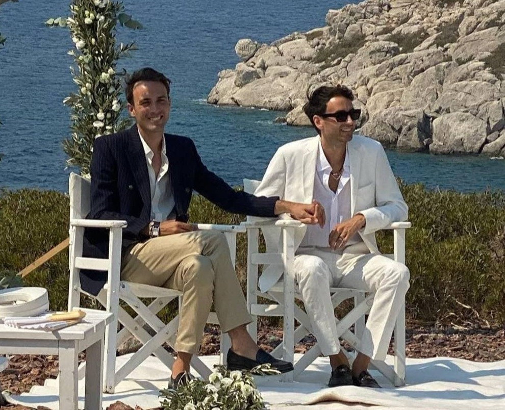 На минувших выходных состоялась одна из самых трогательных свадебных церемоний этого лета – Себастьен Мейер и Арно Вайнт, основатели французского модного бренда Coperni, поженились на атмосферном греческом острове Идра.