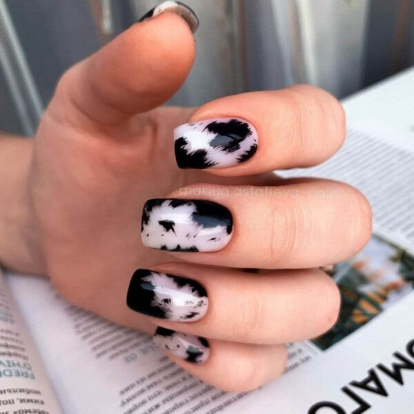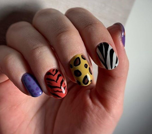 Их можно сделать как в стандартном оттенке, так и в ярких цветах. Например, черные пятна коровьего принта заменяют на темно-синие, с золотой обводкой, розовые. Со змеиной кожей можно пофантазировать и сделать 3D-эффект с помощью мыльной воды. Аналогичными способами привычные принты превращаются в яркие дизайны для ногтей.