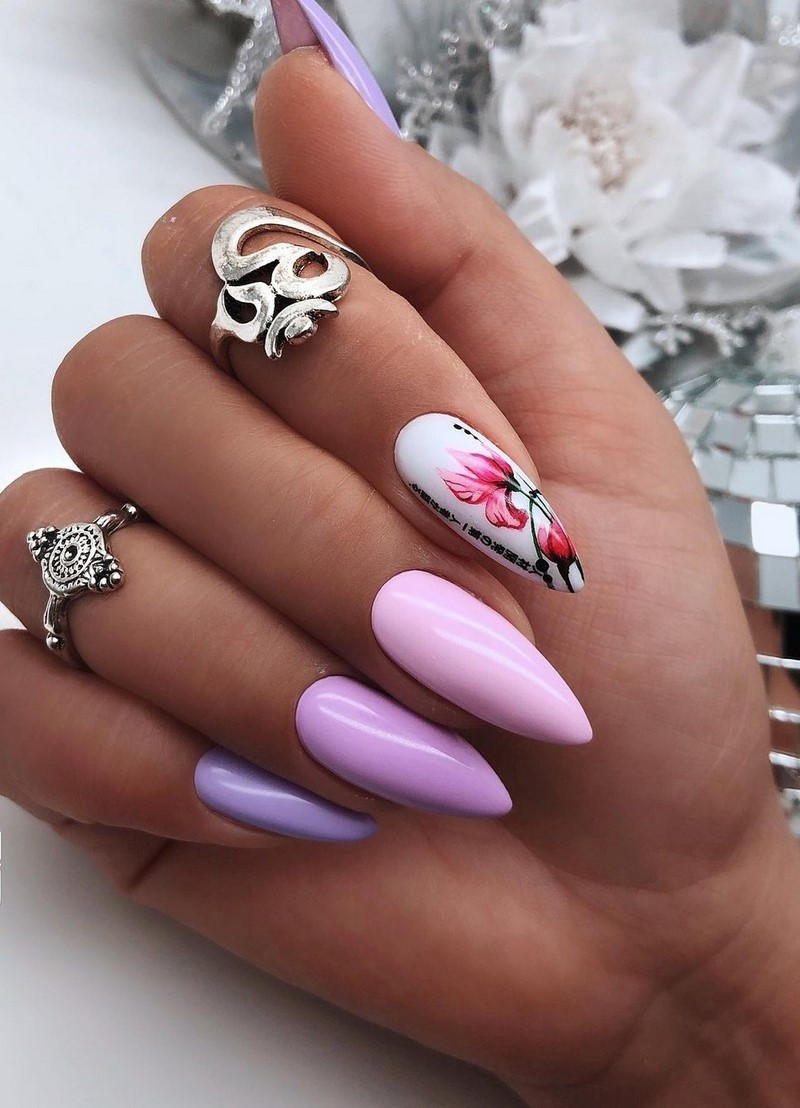 На эти цвета следует обратить внимание, если девушка предпочитает яркий маникюр. Необычно выглядит вариант, когда ногти покрыты разными оттенками. Этот дизайн подходит только смелым девушкам.