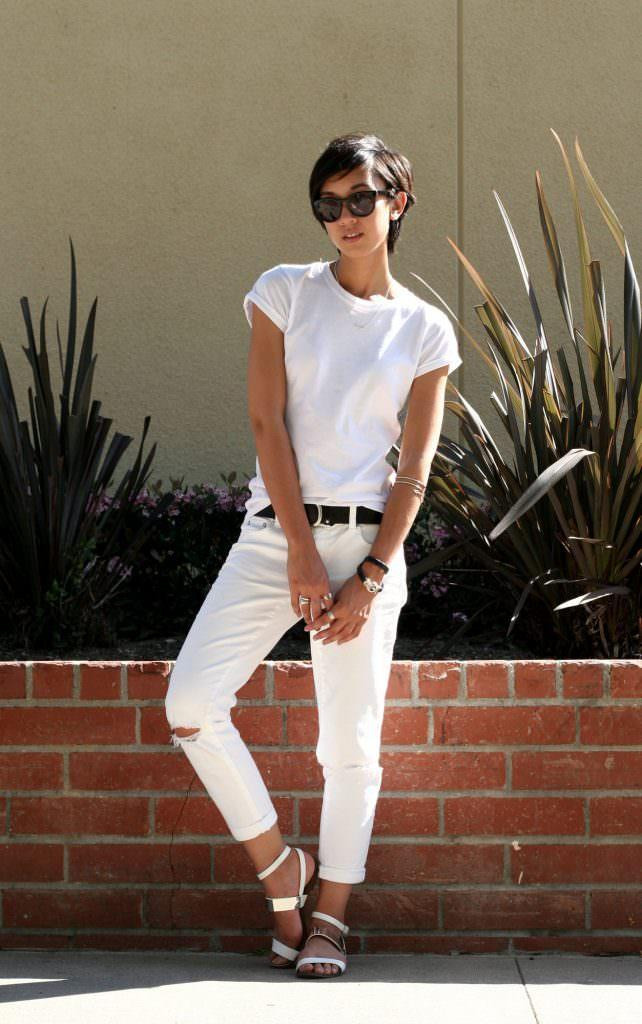 Ну и пожалуй, самым летним и самым популярным сочетание является комбинация из белых джинс с футболкой или топом.