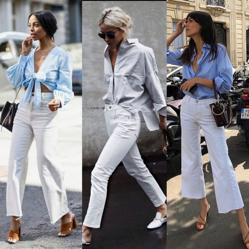 Как только в наборе любимых предметов прочно обосновался низ из джинсовой ткани ослепительного цвета, неизменно наводящего на ассоциации с жарким временем года, обладательница удобного предмета одежды понимает, что выбор, с чем носить белые джинсы, практически неограничен: