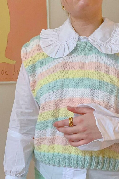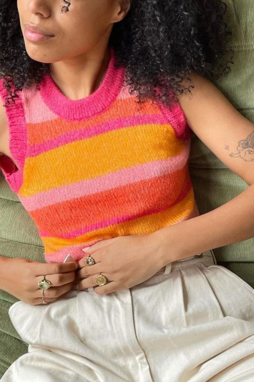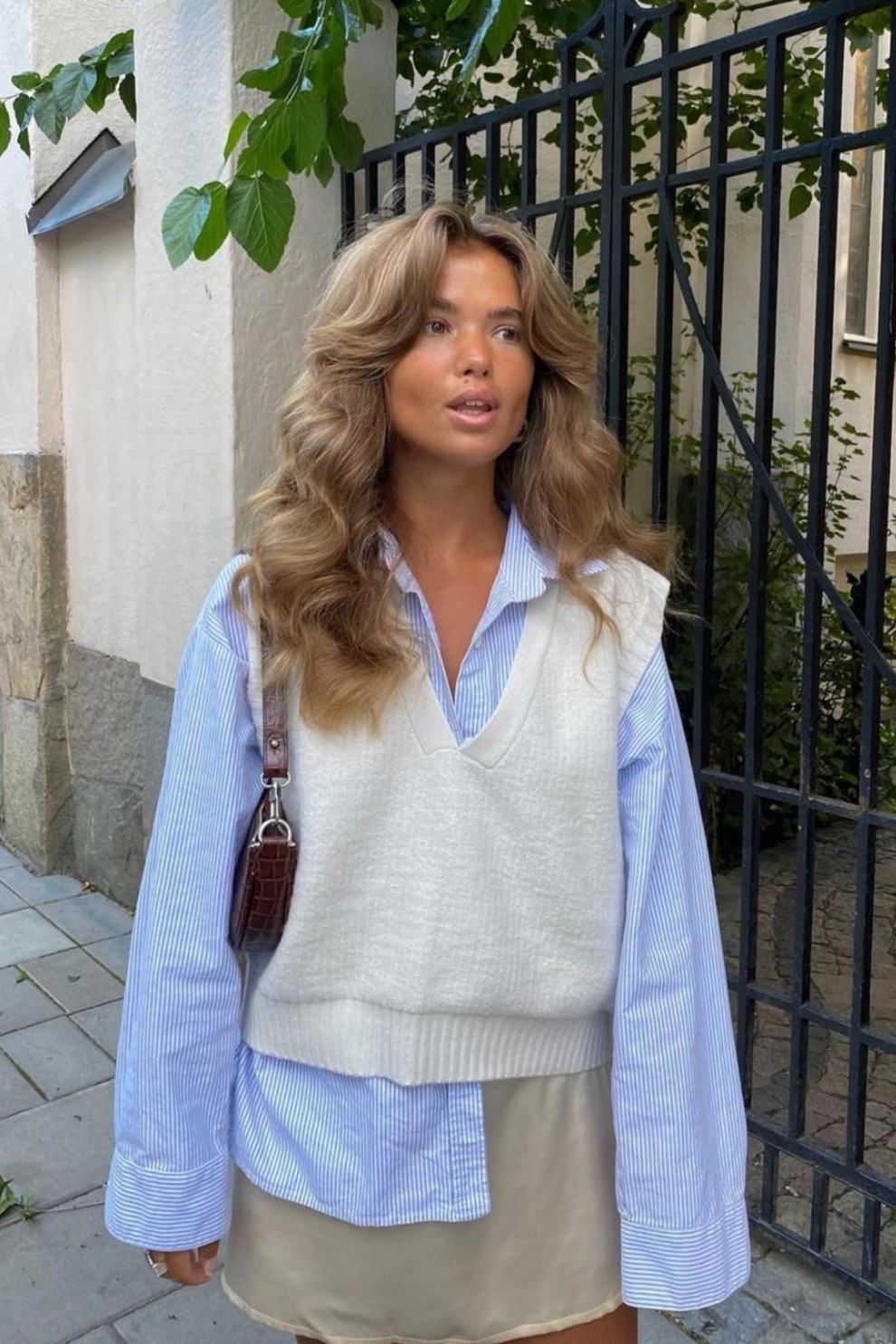 Жилеты-свитера и трикотажные поло были основой скандинавского гардероба до того, как они перекочевали на американскую it-сцену. Добавьте в свой гардероб вязанную вещь с объемным силуэтом или интересным рисунком — например, красочной полосой или градиентным мохером.