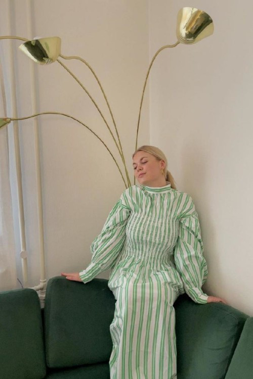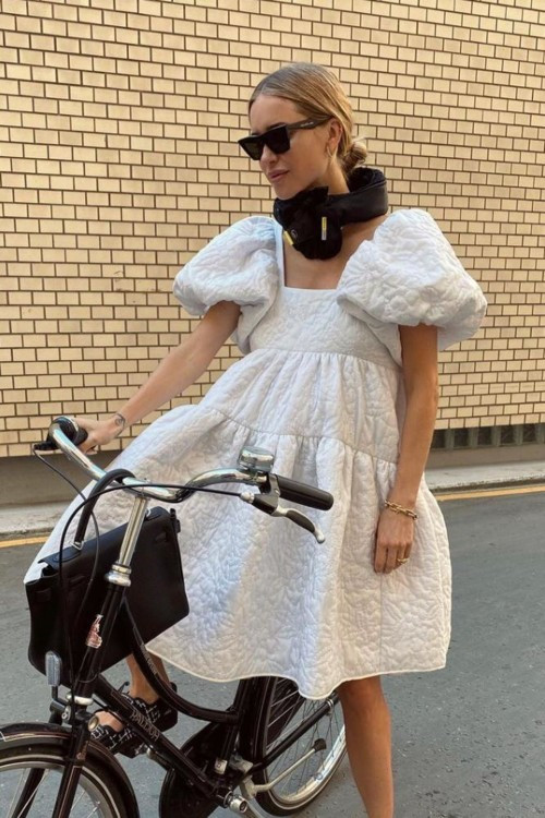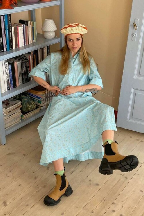Пожалуй, самый знаменитый предмет скандинавского гардероба — пышное платье. За последние несколько лет скандинавские бренды (в частности, Ganni) отстаивали рукава-фонарики и талию в стиле ампир, создавая платья, напоминающие кукольные наряды.