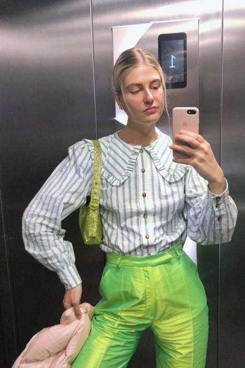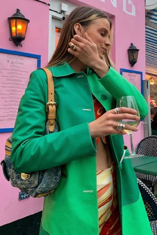 Чем смелее, тем лучше. Одеваться как скандинавская девушка означает выделяться во всех отношениях — как бы вы ни обожали свой классический черный пиджак, выходите за рамки базовых вещей и осваивайте техниколор. От красной лаковой кожи до бирюзового и канареечно-желтого — это радостный подход к современной костюмной одежде.