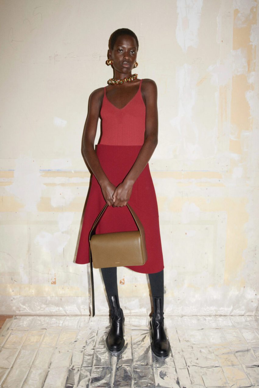 Jil SanderОдним из самых вирусных образов осенне-зимних коллекций стал наряд, который примерила Кендалл Дженнер во время шоу Jacquemus: укороченная рубашка, миниатюрный топ-"шторка" и брюки-клеш цвета фуксия - яркая и смелая альтернатива привычной бежево-коричневой гамме осеннего гардероба. Свою любовь к клешу и такому цветовому комбо показал и Раф Симонс: светло-розовые брюки дизайнер советует рифмовать с экстраобъемным худи.