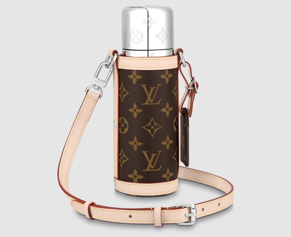 Сдержанный кожаный чехол этого универсального сосуда для напитков Louis Vuitton — неприменно добавляет очарования ультрамодному аксессуару. Но и сам термос, украшенный монограммой, достоин не меньшего внимания — он сохраняет температуру напитка, который хранит в себе.