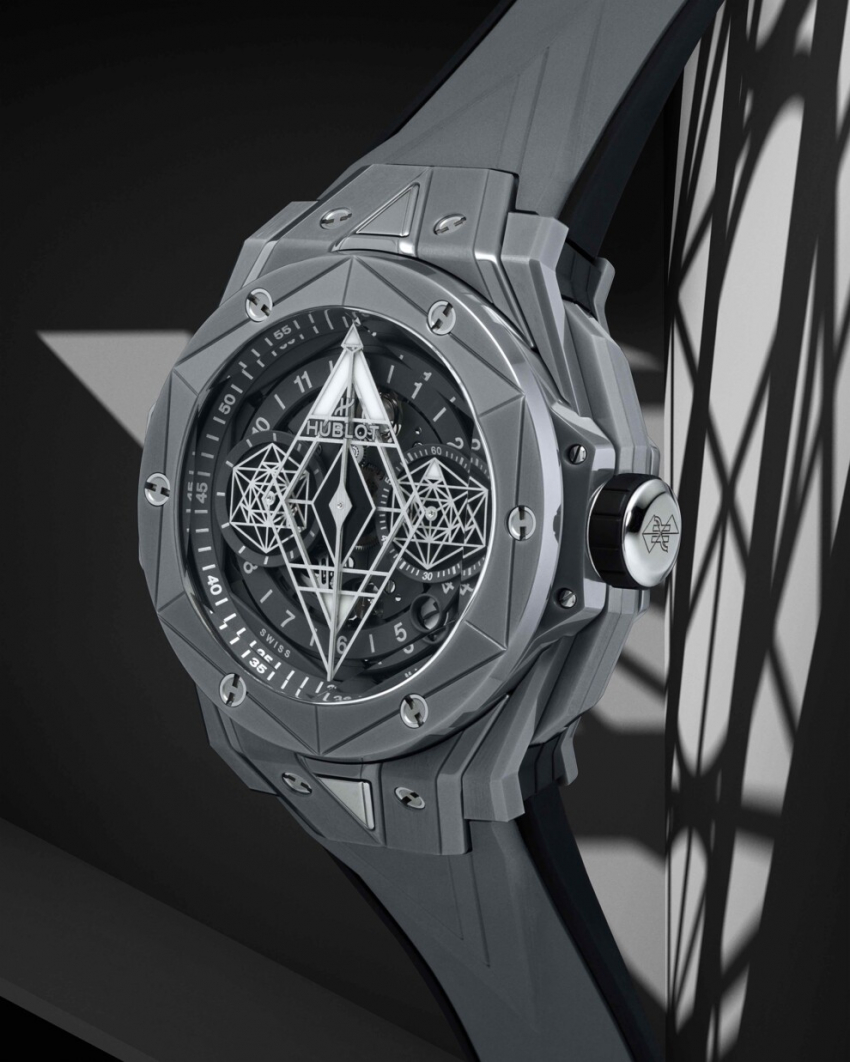 "Выпуск часов Sang Bleu II All Black в версии из керамики в прошлом году позволил нам перейти на следующий этап в работе со студией Sang Bleu, с которой мы сотрудничаем на протяжении пяти лет. Три новые модели знаменуют собой еще одну страницу в нашей истории. Они являются логическим продолжением оригинальной версии All Black и открывают новые перспективы для этой модели, которая до сих пор остается уникальной. Объемная архитектура этих часов в новой версии получает свежее прочтение", – рассказывает Рикардо Гвадалупе, генеральный директор Hublot.