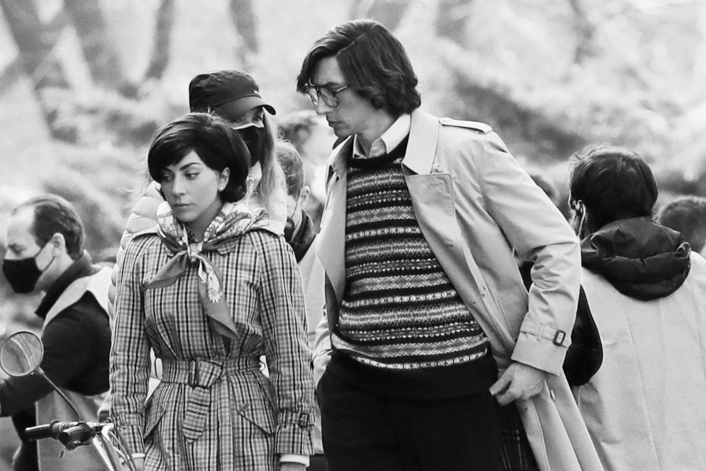 Адам Драйвер и Леди Гага в фильме "Дом Гуччи"За стиль "черной вдовы" отвечала художница по костюмам Джанти Йейтс. В фильме Гагу можно увидеть в элегантном платье в гороховый принт Max Mara, клетчатом тренче Burberry и шелковом платке Gucci, облегающих черных платьях, меховых пальто и эффектных шубах, а также с обилием всевозможных крупных украшений.