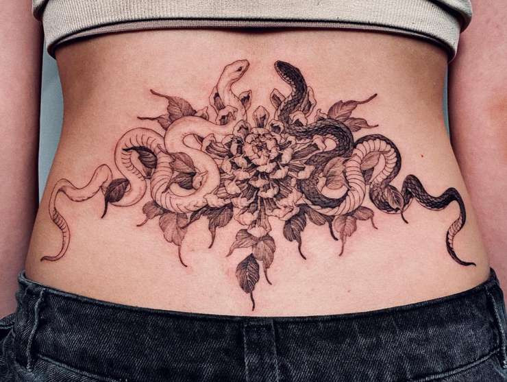 Тату на нижней части спины возвращаются. Однако Саша говорит, что это вовсе не те татушки на пояснице, которые мы дружно бросились набивать в 90-х. «Сейчас они повсюду, но с новым подходом», — говорит она. «Это небольшое слово или фраза, или более упрощенный дизайн — или же полноценный рисунок, мастерски выполненный и большой».