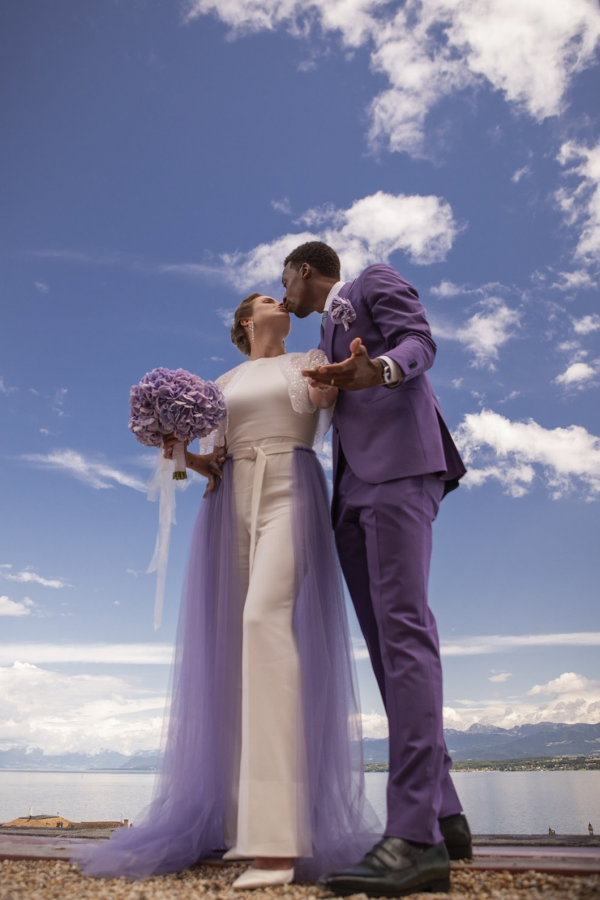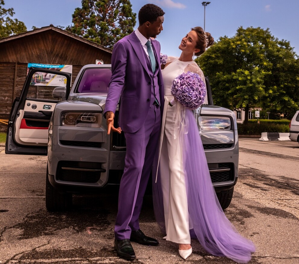 Элина СвитолинаОб образе Гаэля МонфисаУ Гаэля как и у меня было два образа. Днем он выбрал фиолетовый костюм, причем на момент покупки он не знал, что и мое платье будет в этой же цветовой гамме. Второй образ – более классический в черно-белом цвете. Оба наряда для него подготовили в миланском ателье бренда мужской одежды Boggi.