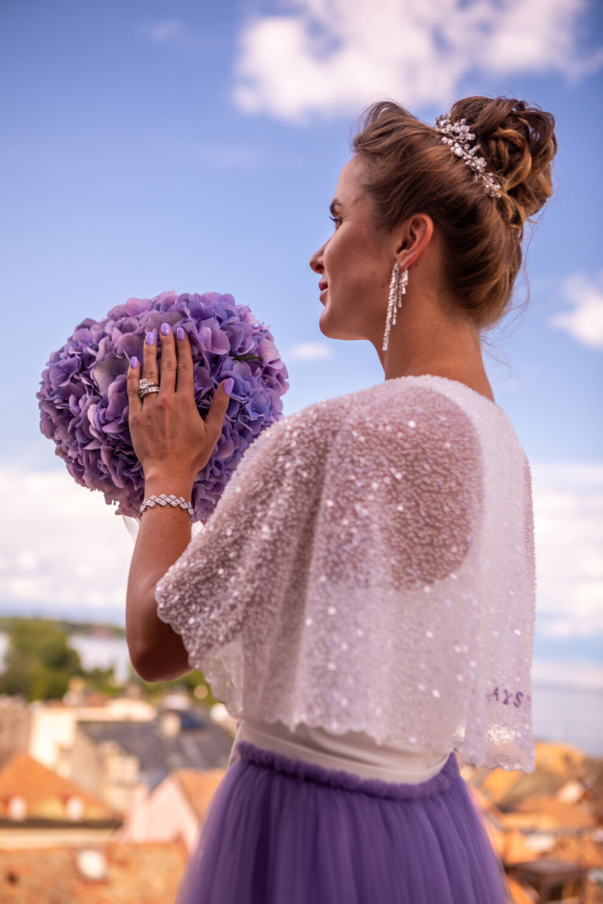 Всего у меня было три образа – остальные два я нашла в киевском салоне Novias, когда приезжала сюда в апреле. Белое платье меня покорило своей минималистичностью, но при этом эффектным внешним видом, а в блестящем мини было так удобно танцевать уже в финале нашей свадебной вечеринки.