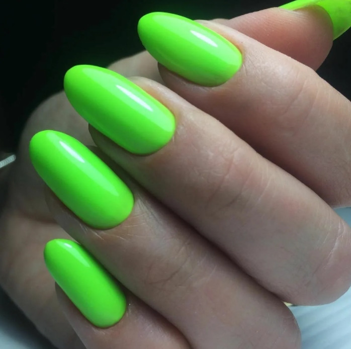 Лето будет временем неоновых огней, когда на ногтях можно будет увидеть сочный, свежий зеленый, бирюзовый цвет, как будто из джунглей Амазонии. Актуален в теплое время года и зеленый лайм.
