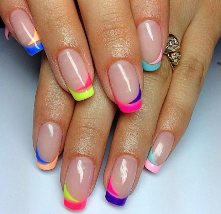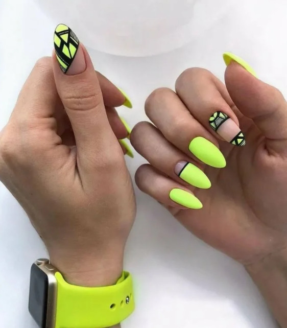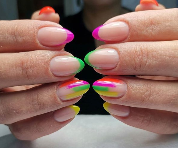 - Неоновый маникюр традиционно лидирует среди ярких разновидностей нейл-арта.