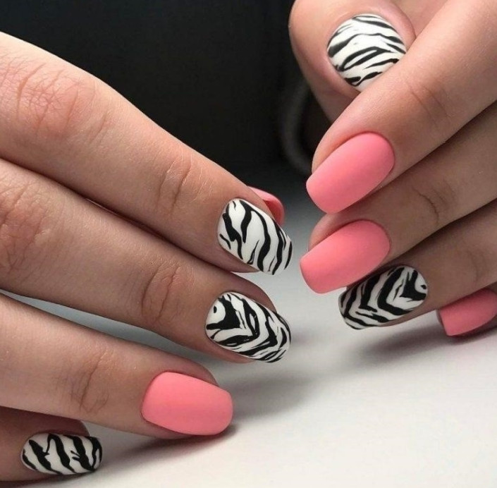 Черно-белые гибридные лаки станут основой одного из самых модных маникюров 2022 года – с анималистическими принтами и геометрическими рисунками. Стилисты все меньше используют леопардовый принт и вместо этого предпочитают рисовать узоры пятнами, как на шкуре коровы. Такой принт должен быть черно-белым или коричнево-белым. В качестве альтернативы можно рисовать на ногте полоски, как у зебры.