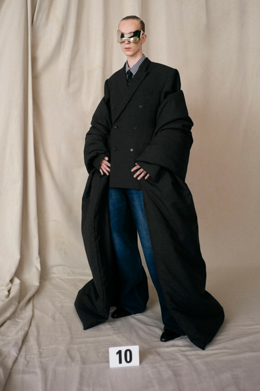 В салоне высокой моды, со всей тщательностью восстановленном до первозданного вида времен Кристобаля Баленсиаги, прошло шоу без музыки. Гости слушали шелест тканей. Спортивные брюки с низкой посадкой, джинсы ручной работы, волочащиеся по бежевому ковру, парки с объемными рукавами, ниспадающими, как водопады с плеч, — шоу, знаменующее возвращение Balenciaga на арену высокой моды после 53-летнего отсутствия, представило креативного директора Демну Гвасалию как диссидента haute couture и портного, столь же скрупулезного в отношении силуэтов, как и основатель легендарного французского Дома.