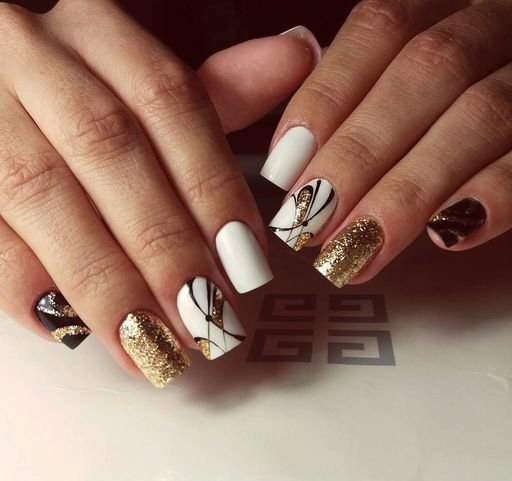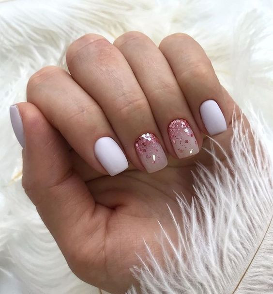 Для запоминающегося маникюра надо выбирать дизайн с блестками. Они освежают, придают оригинальность и утонченность. Блестки напрасно относят к сугубо праздничному варианту: если грамотно подобрать дизайн, они подойдут к деловому стилю и хорошо впишутся в повседневную жизнь.