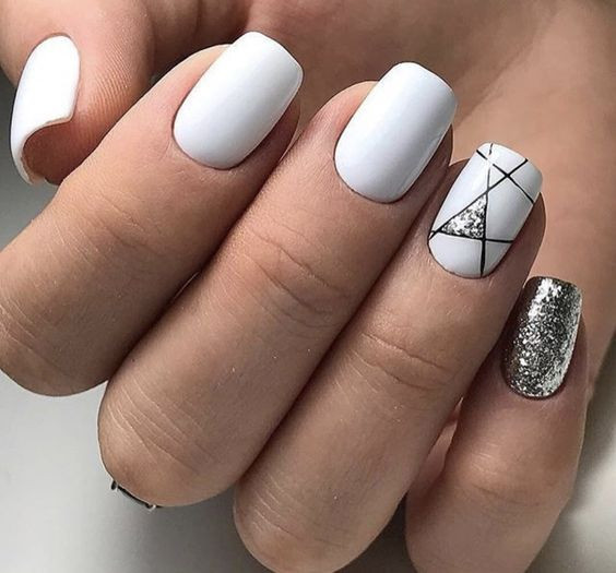 В тренде на 2022 год геометрия с блестками. Этот дизайн долго остается популярным за счет универсальности: