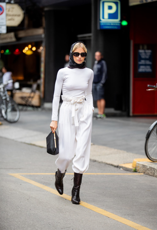 Victoria Beckham, осень-зима 2021/2022Вдохновиться на новые модные открытия можно и образами streetstyle-звезд. Помимо тех вариантов, что продемонстрировали бренды в осенне-зимних коллекциях, этим летом модницы советуют носить шелковые платки на поясе вместо ремня или украшать ими ручки сумки – самый простой способ адаптировать аксессуар к разным образам.