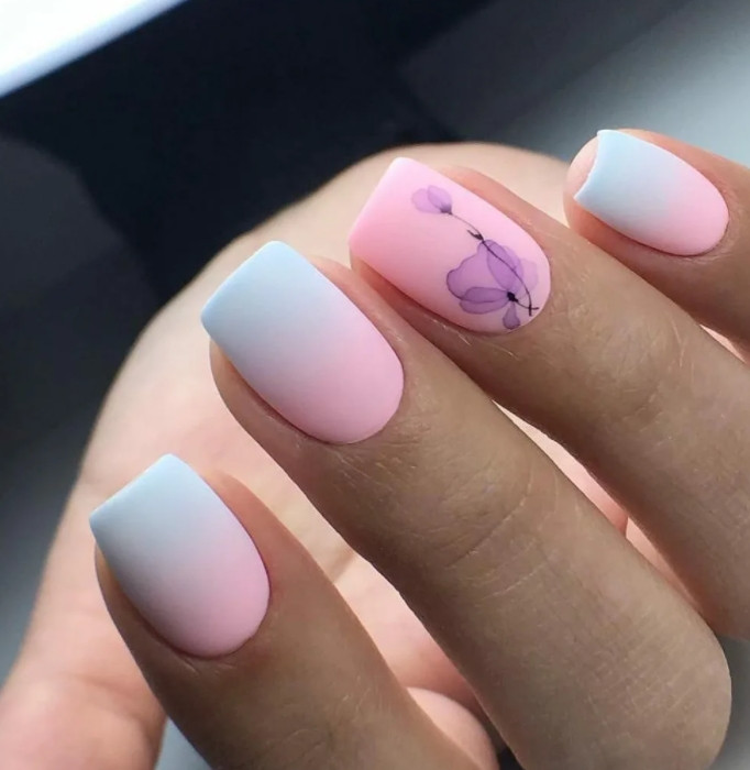 Если вы хотите иметь красивые, нарядные и деликатно накрашенные ногти, светлое омбре – отличное решение. Тонкий, плавный переход двух оттенков создает отличный эффект, оптически удлиняющий и сужающий ногтевую пластину. Использование белого и светло-розового или светло-бежевого лака создает один из самых модных узоров, который называется бэби-бумер. Такой маникюр на квадратные ногти отлично вписывается в модные тенденции лета 2022 года. Для этого лучше всего подходят округлые формы ногтей, например, миндалевидная или классический овал.