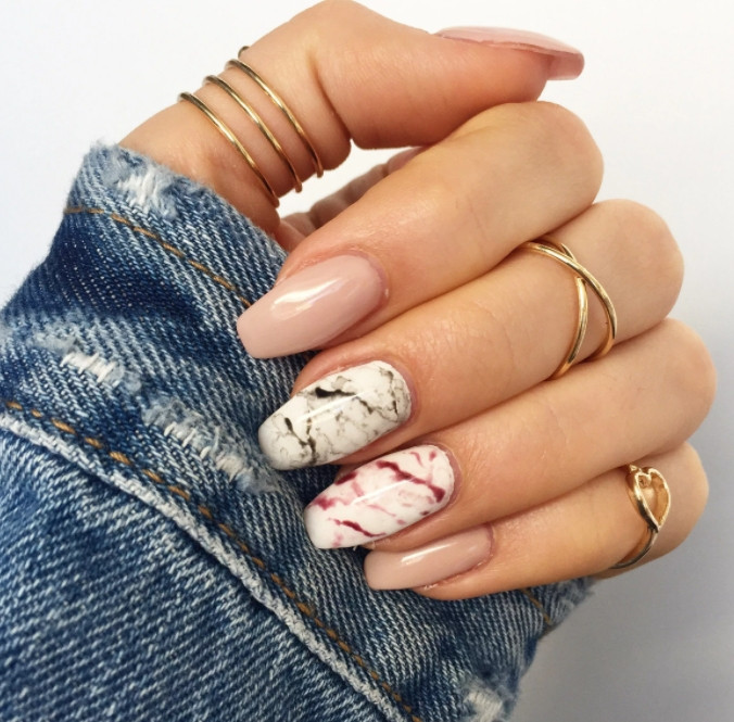 - Дизайн под мрамор – красивое и модное решение, напоминающее фактуру мрамора, с нежными вкраплениями выбранного цвета на фоне базового оттенка.