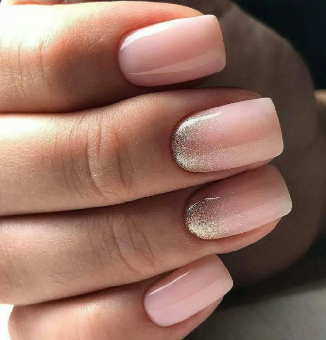 - Светлое омбре – разновидность французского маникюра. Главное отличие в том, что 2 цвета соединены плавным нежным переходом, без видимой границы.