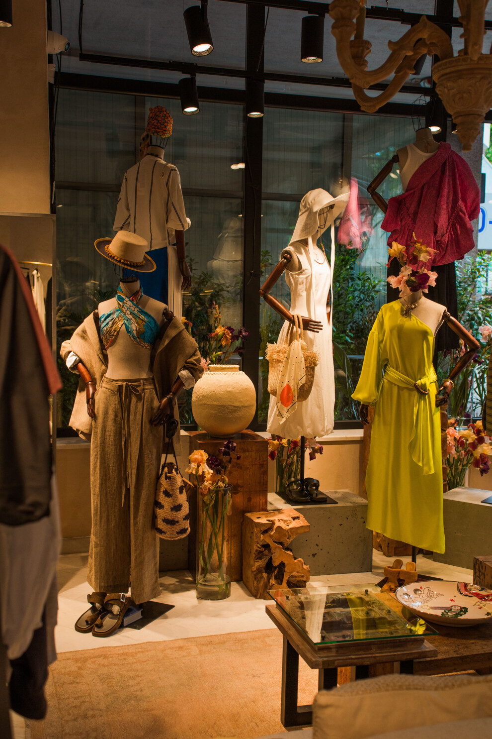 Здесь есть корейский бренд Recto, идеально гармонизирующий структурные детали и классические силуэты; минималистичные вещи японского бренда Rito, роскошная обувь из коллаборации Gia Couture X Rosie Huntington-Whiteley, костюмы и кафтаны турецкого бренда Nackiyé.