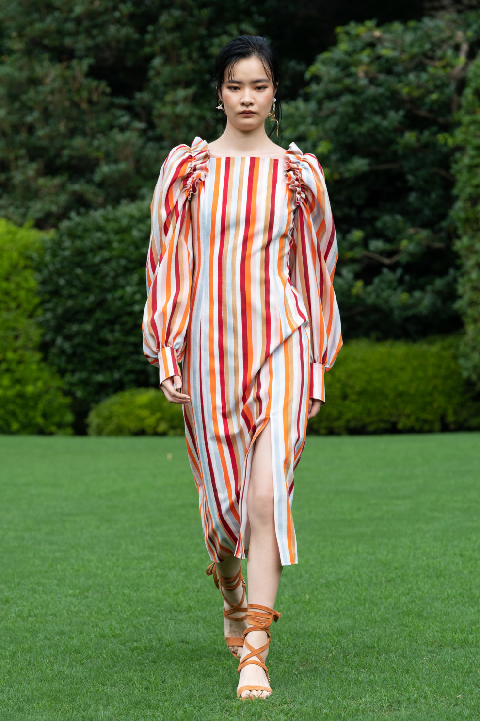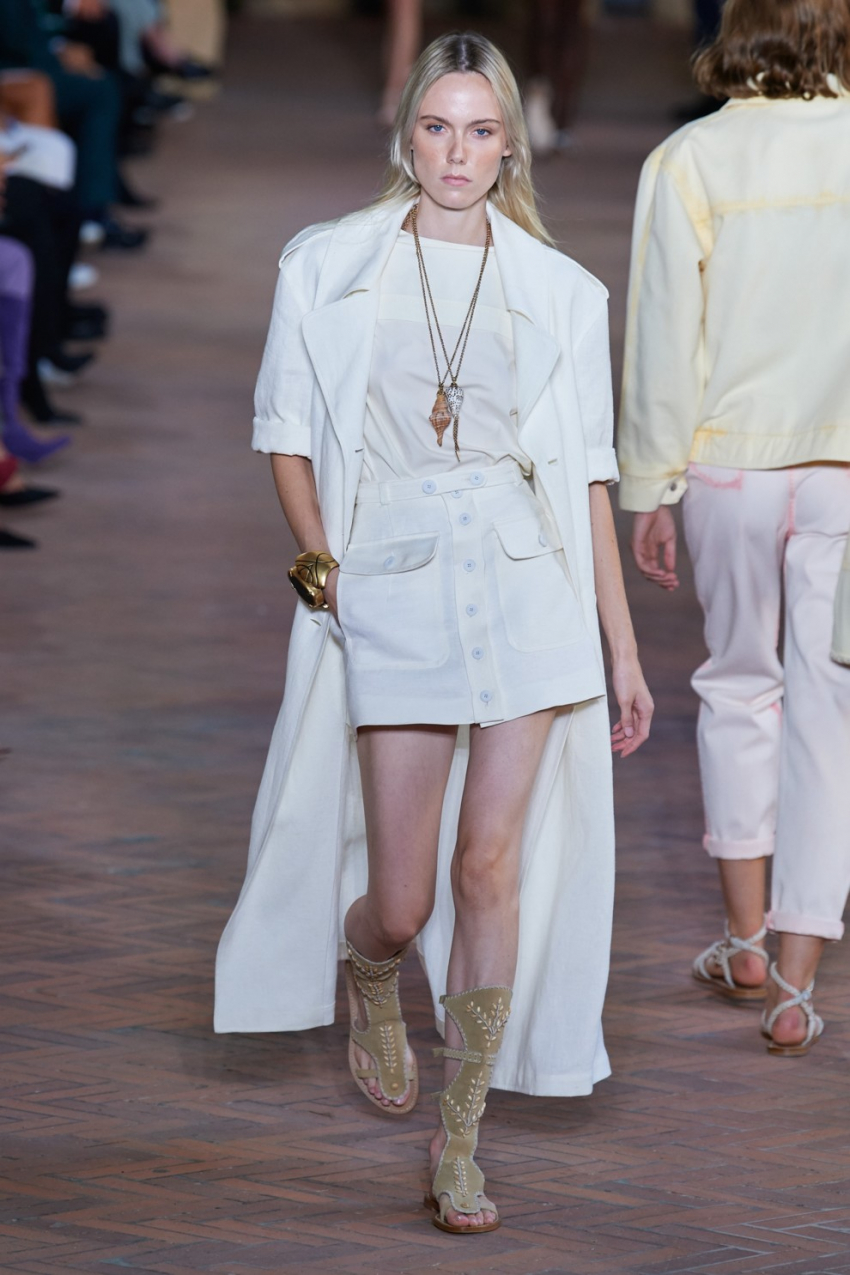 Emilio PucciПовседневный и базовый вариант сандалий-гладиаторов появился в коллекциях Adeam и Vince. Бренды предложили обувь с изысканными завязками чуть выше щиколоток, которая отлично рифмуется с платьями в полоску, брючными костюмами и летними юбками и топами. Chloe также взяли за основу греко-римскую эстетику и показали на подиуме обувь со всевозможными перемычками и переплетами, напоминая о культовых гладиаторах.