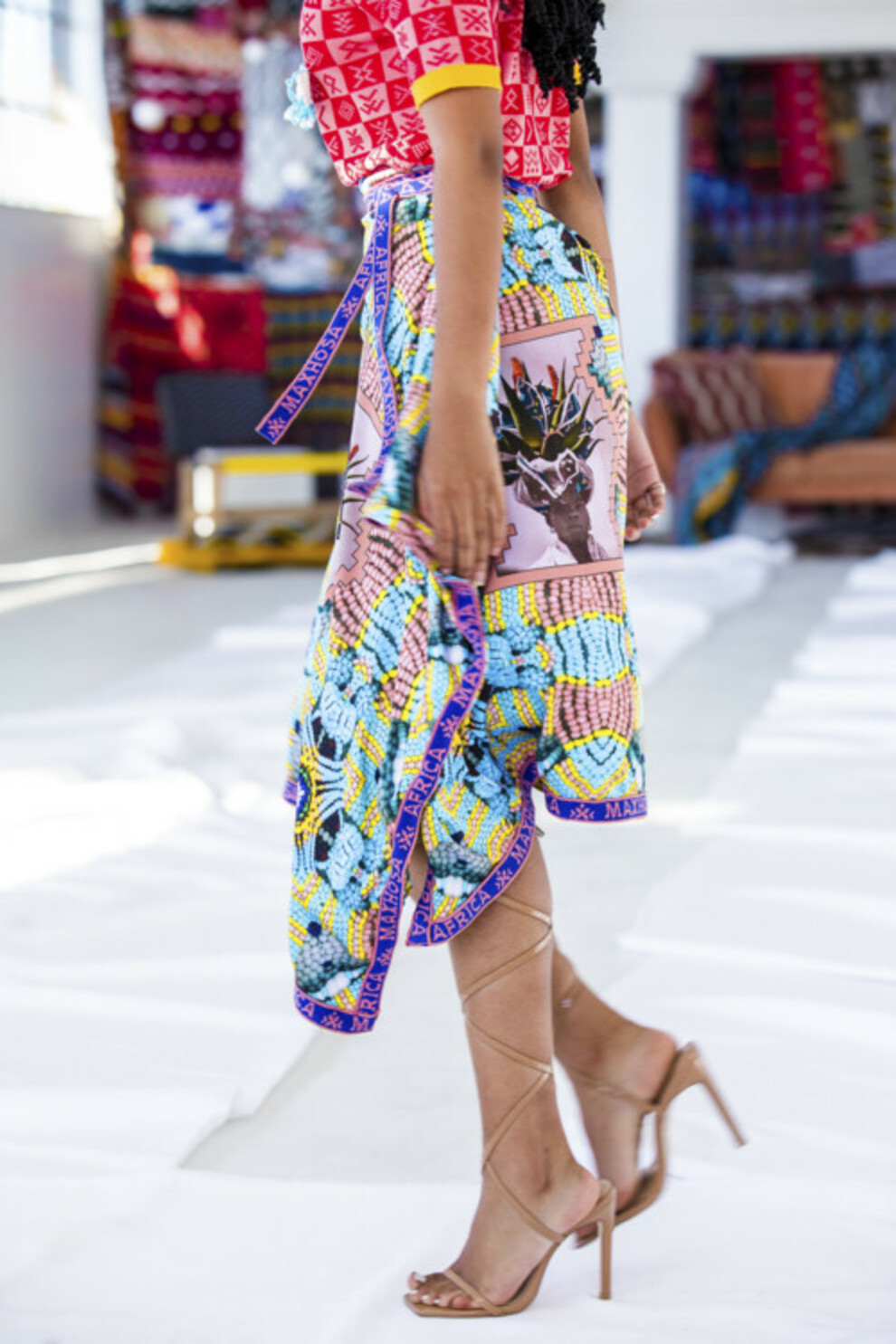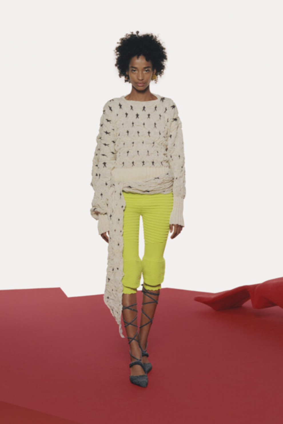 Rebecca TaylorВ лукбуке Emilio Pucci весна-лето 2021 модели демонстрировали черные гладиаторские сандалии, обутые поверх совершенно белых колготок. Небольшая петля на большом пальце напоминала про вьетнамки, а длинные ремешки, обернутые вокруг голеней, создавали драматический эффект. Если большинство брендов делали ставку на плоский ход, то Blumarine и Maxhosa Africa показали провокационную переплетенную обувь на высоких каблуках. Этот стиль напомнил образ Рианны на балу Met Gala в 2017 году, когда она появилась в в авангардном платье Comme des Garçons и босоножках-гладиаторах до середины бедер Dsquared2.