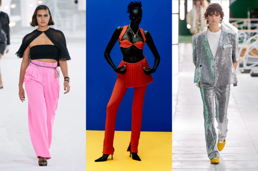 Miu Miu, Chopova Lowena, Maryam Nassir ZadehБрюки с высокой посадкойКто сказал, что брюки - это скучно и неоригинально? Не имеет значение, модель ли это wide leg флуоресцентно-розового цвета, как у Chanel, или безупречный slim-крой от Maximilian, они комфорты и практичны - и способны заявить о себе ярко. Если вы чувствуете себя особенно смелой, попробуйте расшитую пайетками пару с рифмующимся жакетом с коротким рукавом от Louis Vuitton.