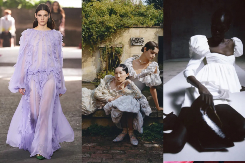 Valentino, Rick Owens, Harris Reed x RokerВоздушные платьяInstagram и TikTok диктуют новые тренды, и можно с уверенностью сказать, что направление regencycore, с нарядами в духе ампир и в лучших традициях английской эпохи Регентства, несомненно, является популярным стилем этого лета. Макси-платье из невесемого шифона, как у Valentino и Yuhan Wang, или модель мини с объемными рукавами от Khaite и Loewe помогут воплотить в жизнь образы, вдохновленные сериалом "Бриджертоны".