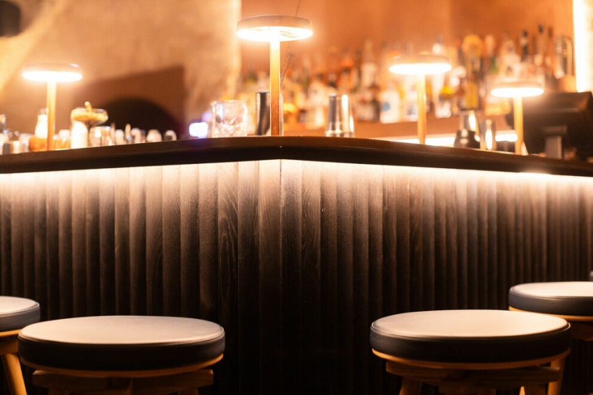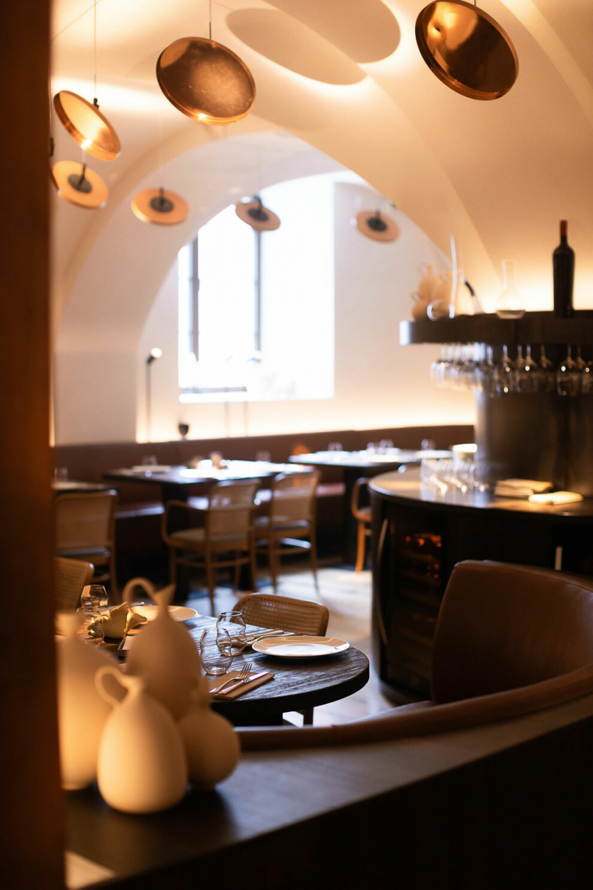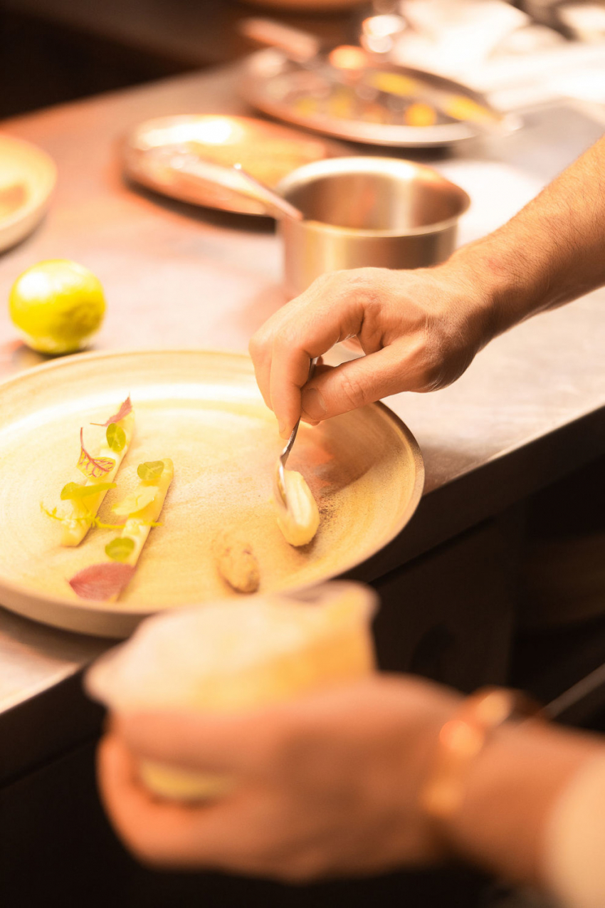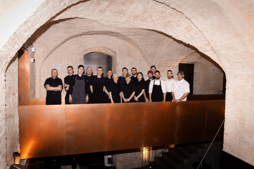 Бар ресторана SamnaТак, в Samna самая большая кухня из всех моих проектов как по размеру, так и по техническому оснащению. Одновременно здесь легко размещаются 25 поваров, у которых в распоряжении есть все – от сувида и хоспера до гриля и аппарата для приготовления мороженого. Мне нравится, что команда, которая занималась дизайном, подчеркнула возраст этого здания, сохранив оригинальную кирпичную кладку и эти роскошные своды.