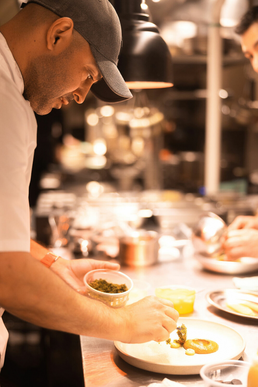 В ноябре 2020 года в Киеве открылся один из самых интересных ресторанов города – Samna, представляющий современный взгляд на многогранную ближневосточную кухню. Открыл проект израильский шеф-повар Меир Адони, который до этого успел запустить рестораны по всему миру – от родного Тель-Авива до Нью-Йорка и Барселоны. В конце апреля Адони приезжал в Украину на презентацию нового меню – vogue.ua успел с ним встретиться и узнать, что же он приготовил для киевских гедонистов в новом сезоне, почему у нас в стране еще нет мишленовских звезд и какие тренды определяют современную гастроиндустрию.