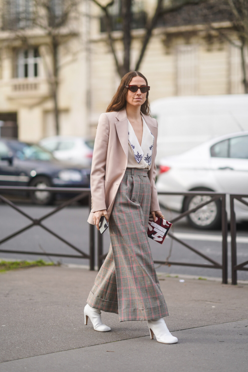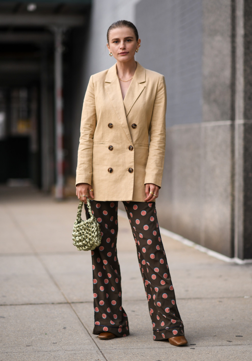 С принтамиЯркие узоры и фантазийные принты – прерогатива весенне-летнего сезона. После затяжных карантинных ограничений желание наряжаться ярко возникло особенно остро. В ход идут никогда не стареющие клетчатый и гороховый узоры, которые еще более эффектны в сочетании с классическим бежевым жакетом. Шелковые брюки в пижамном стиле и шерстяные кюлоты с высокой посадкой - весенние фавориты it-girls.