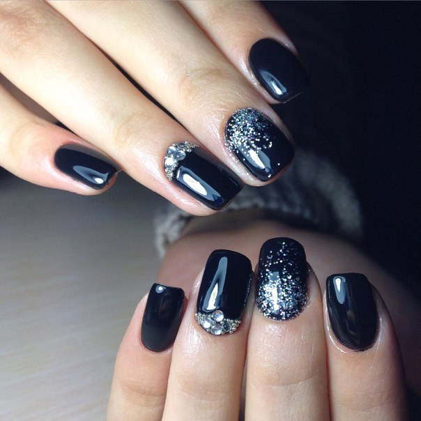 Стразы и лак темного цвета