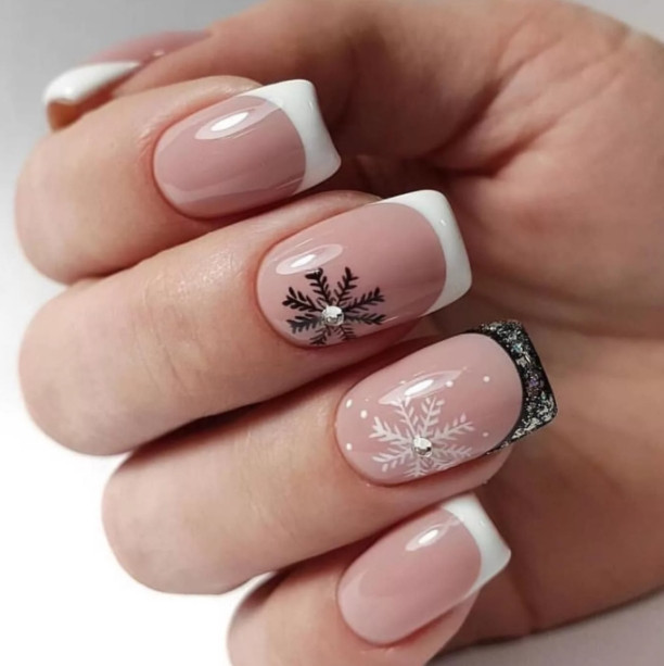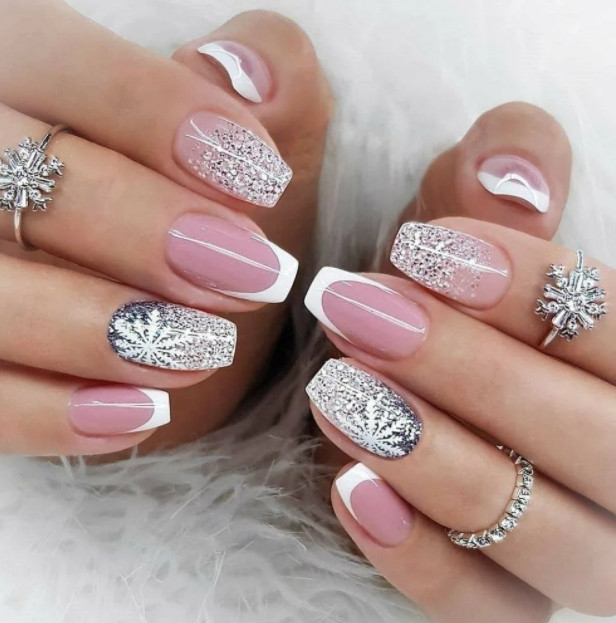 Снежинки – символ Нового года, поэтому вне зависимости от сезона они не теряют своей актуальности. Более того, ежегодно мастера удивляют новыми техниками исполнения привычного рисунка. В 2022 году специалисты рекомендуют украшать ногти нарисованными и объемными снежинками. А чтобы маникюр смотрелся празднично, его стоит разнообразить стразами.