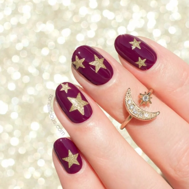 Звездочка лучше всего смотрится на холодных и темных оттенках. Поэтому лучше всего отдавать предпочтение синим и фиолетовым тонам.