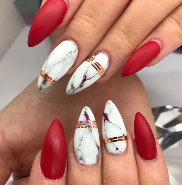 Существует несколько вариантов оформления маникюра на Новый год 2022 на длинные ногти. Каждый отличается не только декором, но и техникой исполнения.