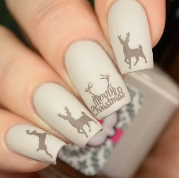Такой вариант маникюра на Новый год 2022 лучше всего подходит на длинные ногти. Это обусловлено тем, что мастеру будет намного легче создавать принт. Более того, он сможет сделать его максимально детализированным.