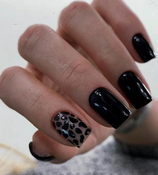 Однотонное черное покрытие без дизайна — классика, которая становится трендом на протяжении многих сезонов. Такой маникюр привлекательно выглядит как на длинных, так и на коротких ногтях. Во втором случае он визуально удлиняет ногтевую пластину.