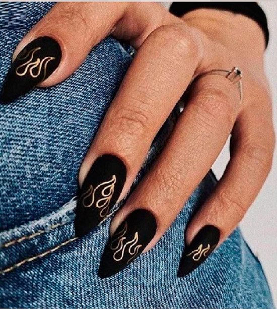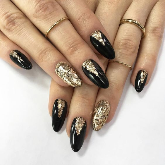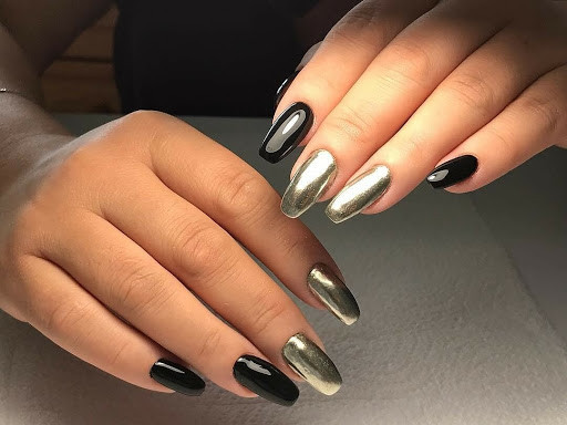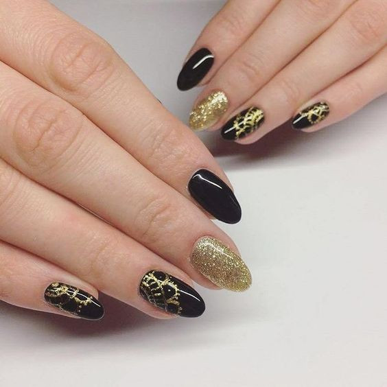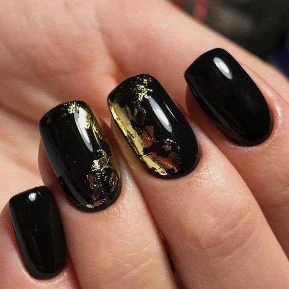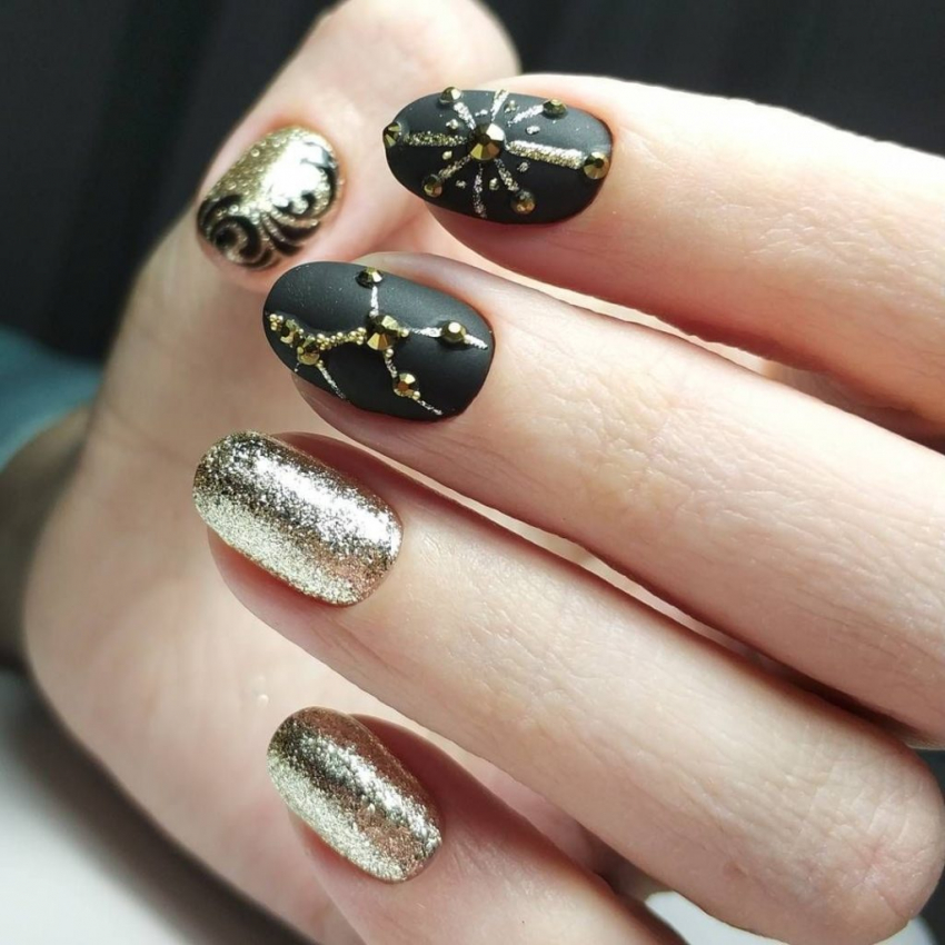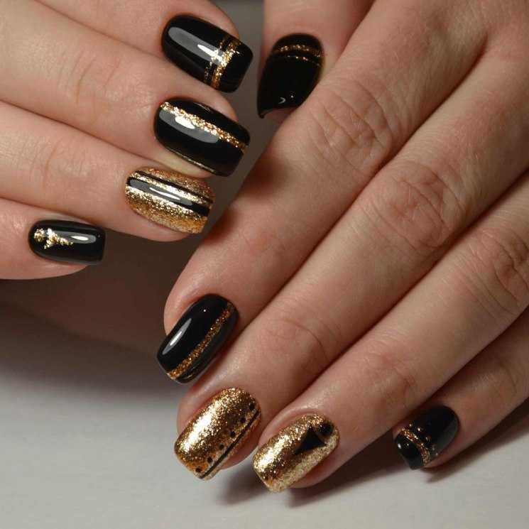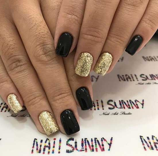 Если хочется разнообразия и ярких акцентов в маникюре, следует обратить внимание на это сочетание. Черный цвет можно взять в качестве основного, а золотым лаком выполнить дизайн.