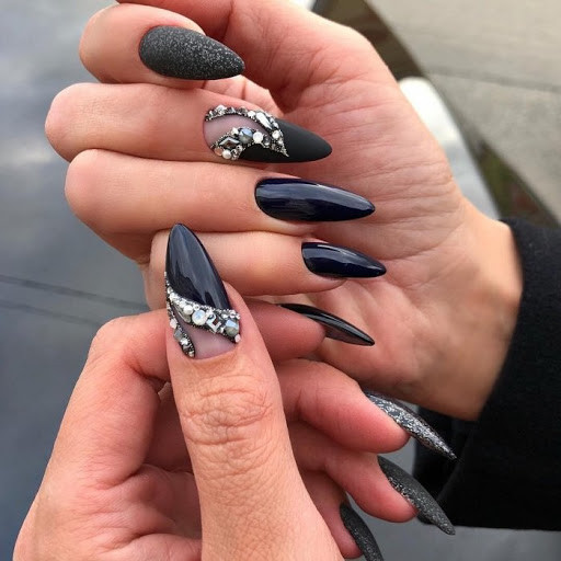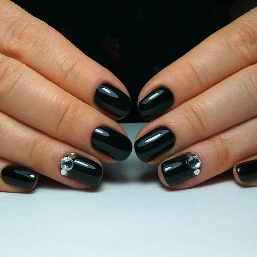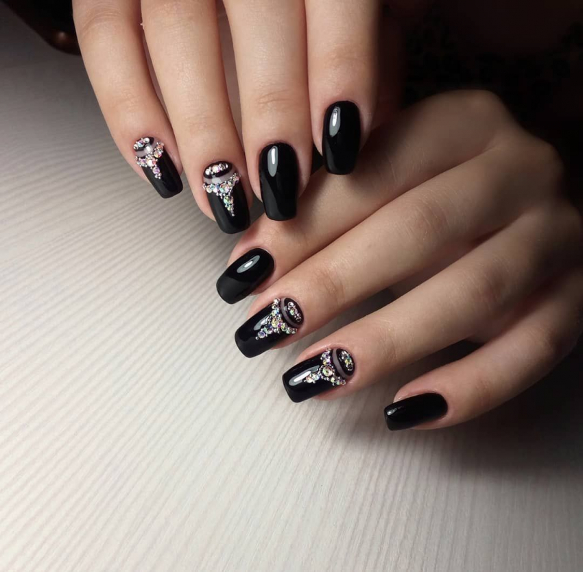 Сияние стразов нравится почти всем девушкам. Однако многие быстро устают от яркого дизайна. Если вы давно хотели поэкспериментировать и сделать маникюр со стразами, то черные камешки на ногтях — самый подходящий вариант.