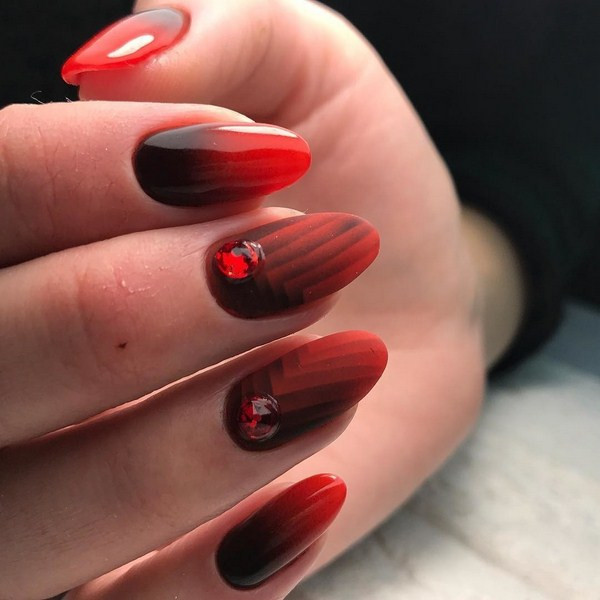 Сочетание черного и бордового станет в 2022 году одним из главных трендов темного маникюра. Наиболее эффектно такой дизайн будет смотреться на длинных ногтях. Рисунки и узоры могут быть разными: