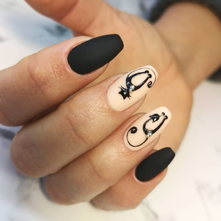Маникюр черного цвета с матовым покрытием универсален. Он подходит под многие образы, сочетается с деловыми костюмами, летними платьями, джинсами, рубашками.