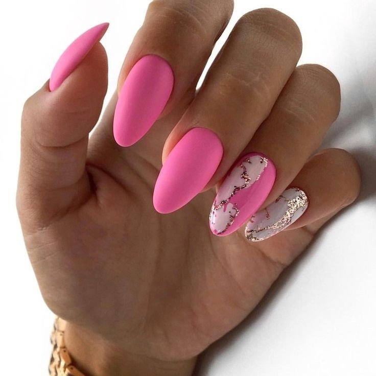 Матовый розовый маникюр в 2022 году представляет модные тенденции нейл-арта. На фото видно сочетание матового покрытия с другими техниками.