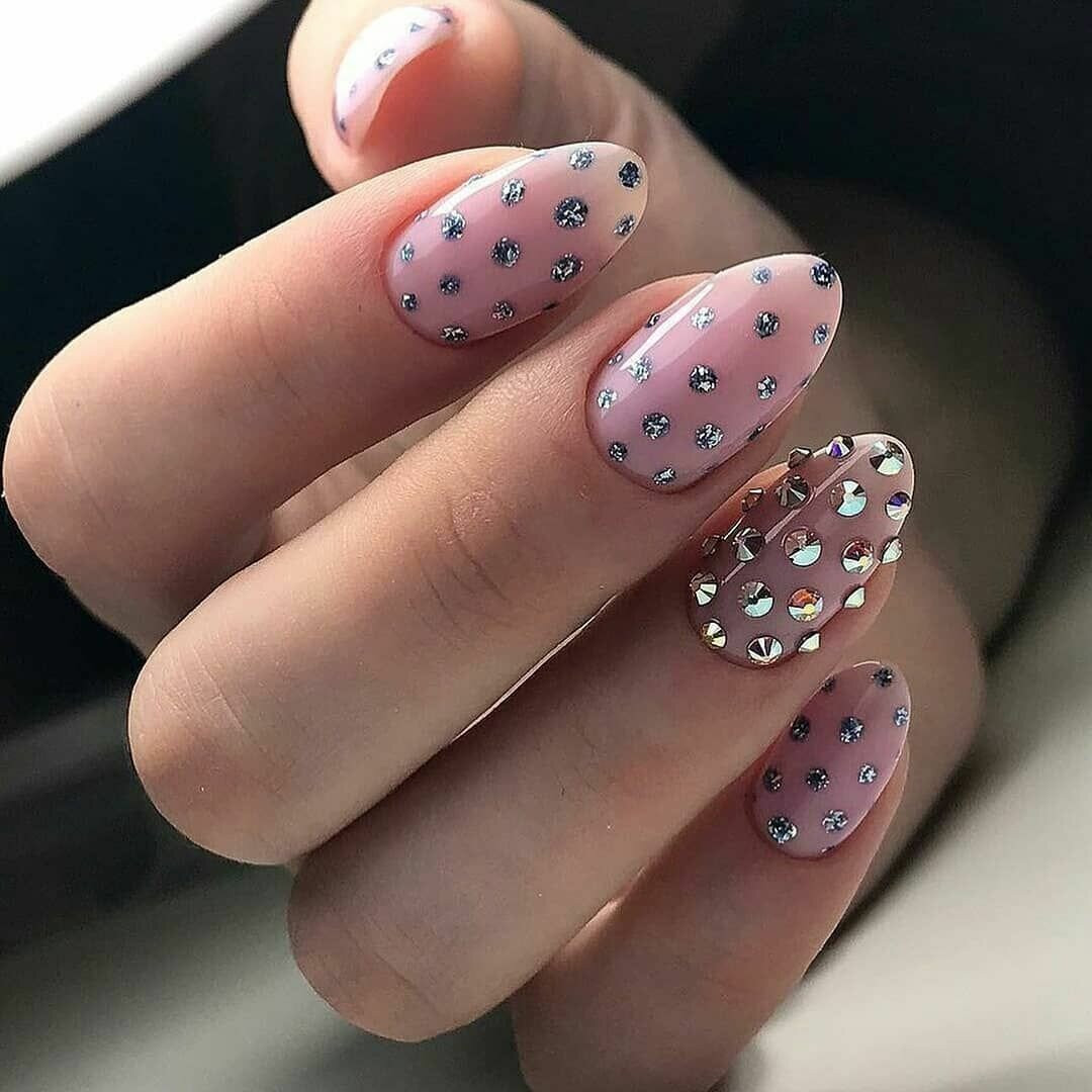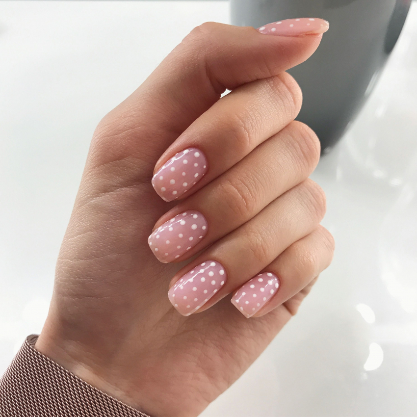 Это универсальный принт, который уже долго радует поклонников простоты и легкого шарма. Несложная технология рисования позволяет создавать шедевры всякий раз с новыми нюансами. Мастера экспериментируют, применяя разные техники нанесения, всевозможные оттенки, их комбинации. Основное покрытие может быть глянцевым или матовым, на любом капельки выглядят восхитительно.