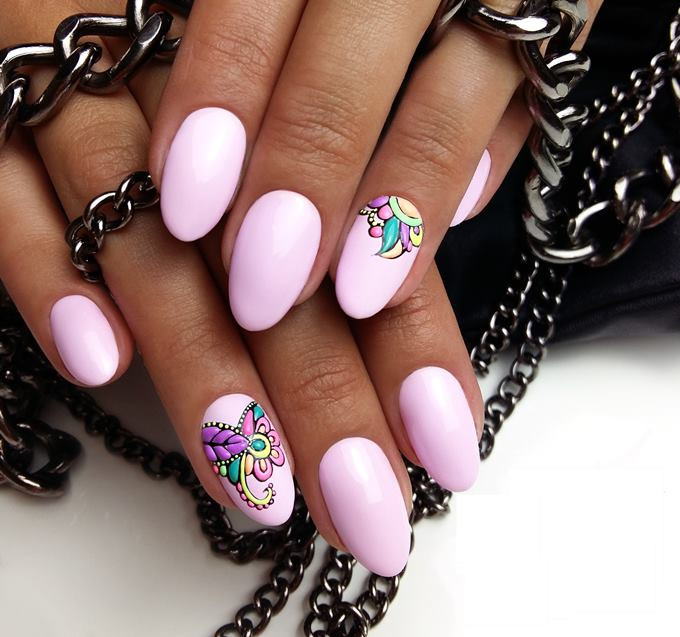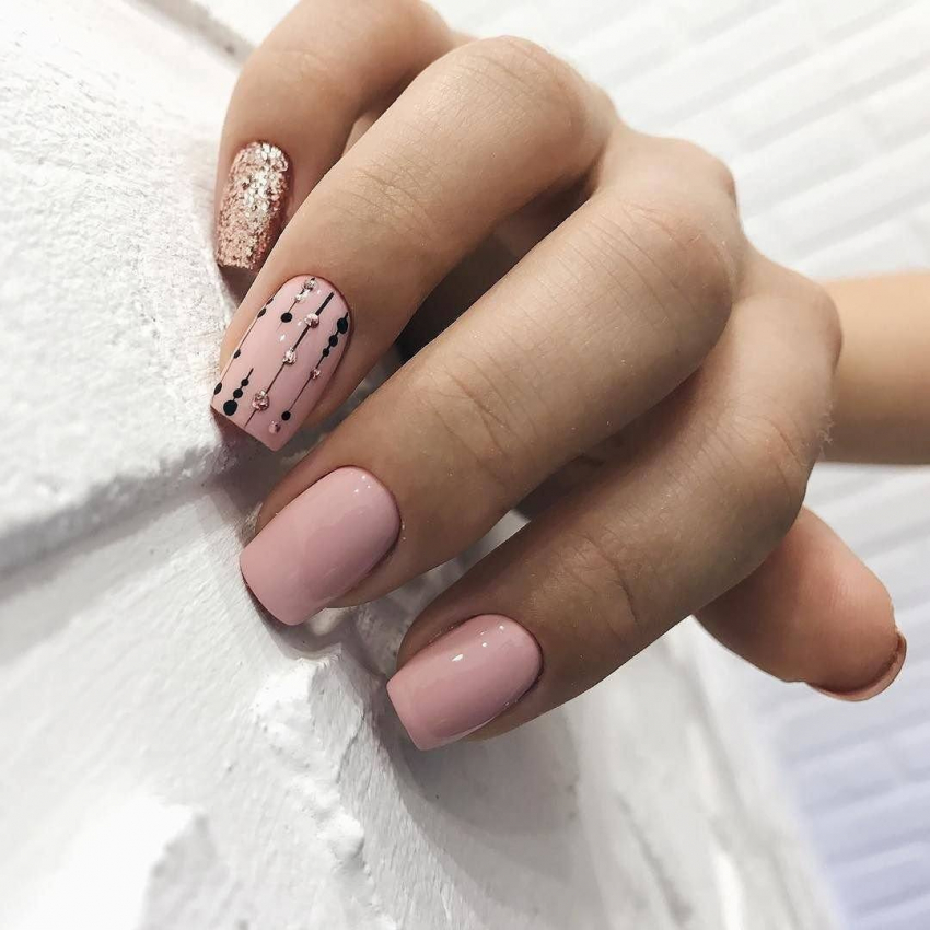 - Розовый маникюр подходит для любой длины ногтей.