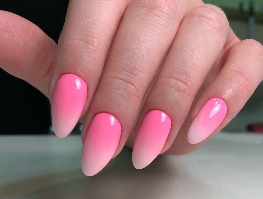 Техника омбре уже продолжительное время остается популярной. Градиентное окрашивание имеет много разновидностей, но все они приковывают взгляды своим необычным дизайном. Хорошо смотрится розовый омбре с лиловыми, голубыми, бирюзовым оттенками.