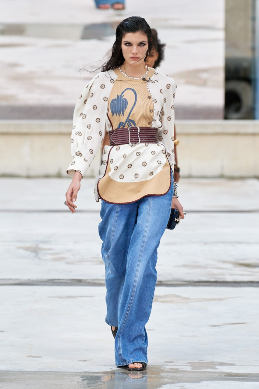 Из года в год дизайнеры экспериментируют с фасонами и оттенками джинсов. Если прошлой весной самыми модными парами считались джинсы-slouchy, то в новом сезоне пальму первенства заняли широкие модели. Chloe показали голубые свободные джинсы, которые не будут сковывать движения и легко впишутся в повседневный гардероб, Jacquemus представили персиковый вариант в пол с завышенной линией талии, благодаря которому создается "эффект бесконечных ног", а Christian Dior поиграли с несколькими оттенками денима, предлагая широкие джинсы в стиле пэчворк.